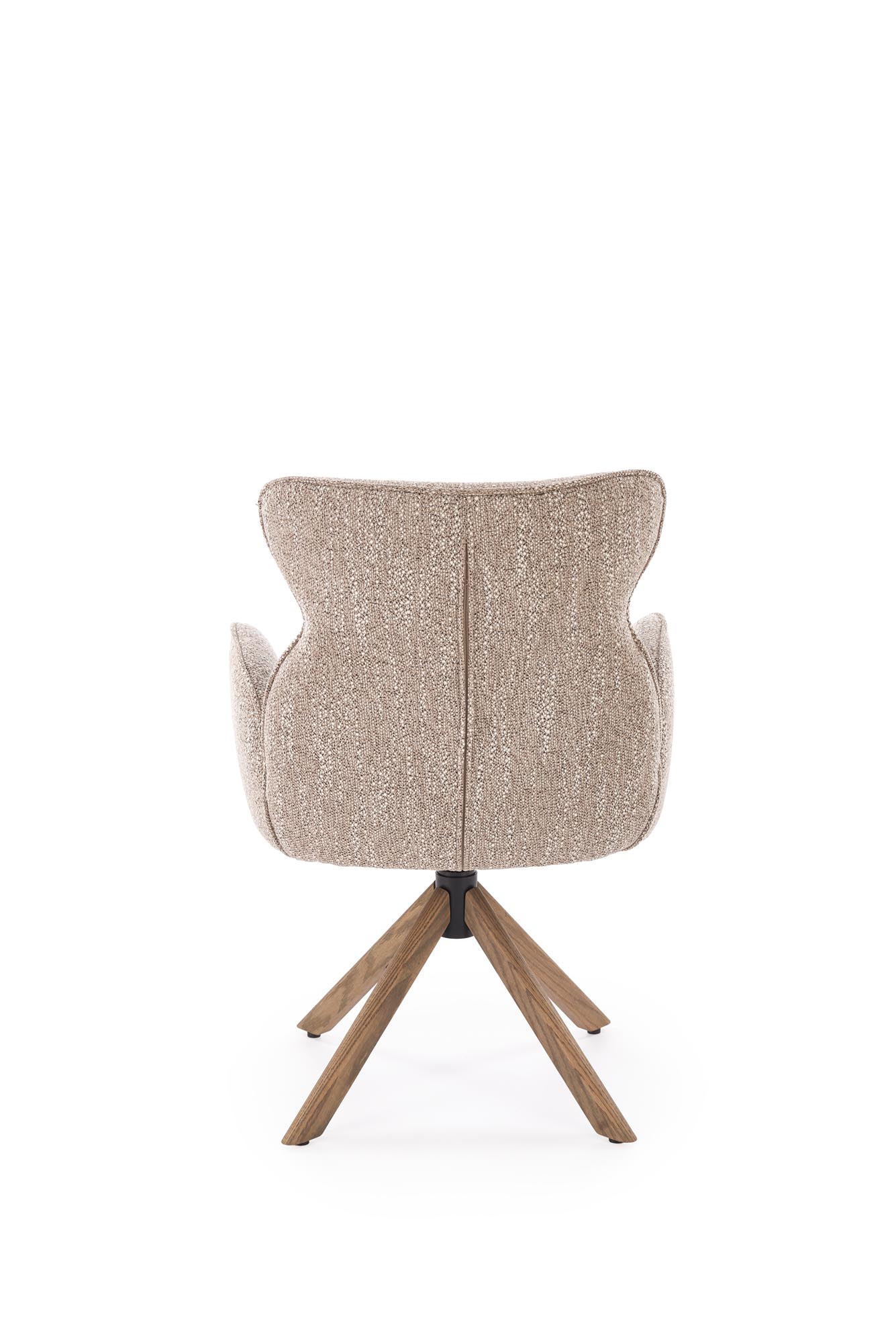 Jídelní židle K585 - je elegantní otočná židle vyrobena v kombinaci masivního dřeva, pohodlného tkaninového sedáku a opěradla čalouněné látkou v tmavě béžové barvě.