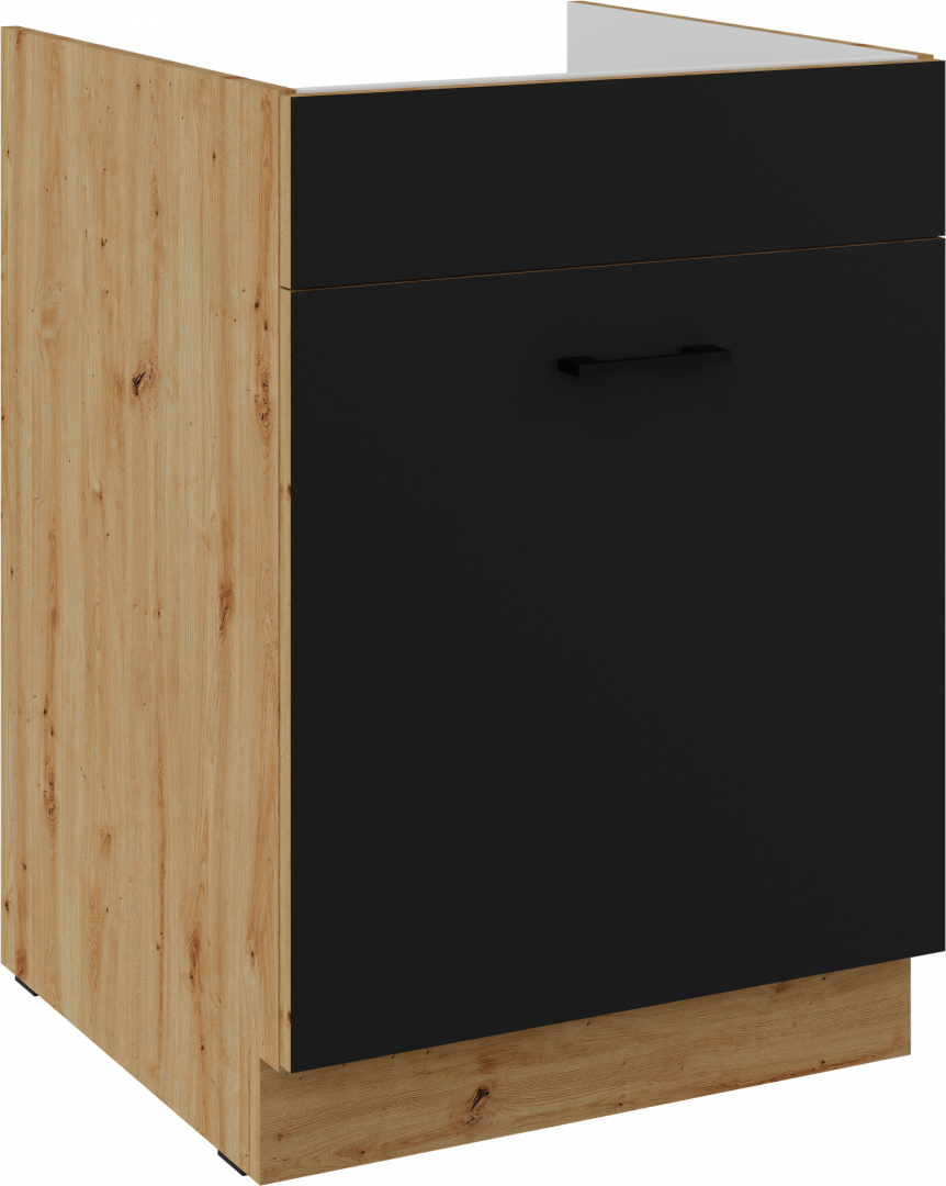 Spodní dřezová skříňka s šuplíkem na koš ze systému MODERNA - dřezová skříňka do kuchyňské linky je uzavíratelná praktickým šuplíkem s možností vložení odpadkového koše a s širokým kovovým úchytem. Šuplík skříňky je vyroben v dekoru Černá.